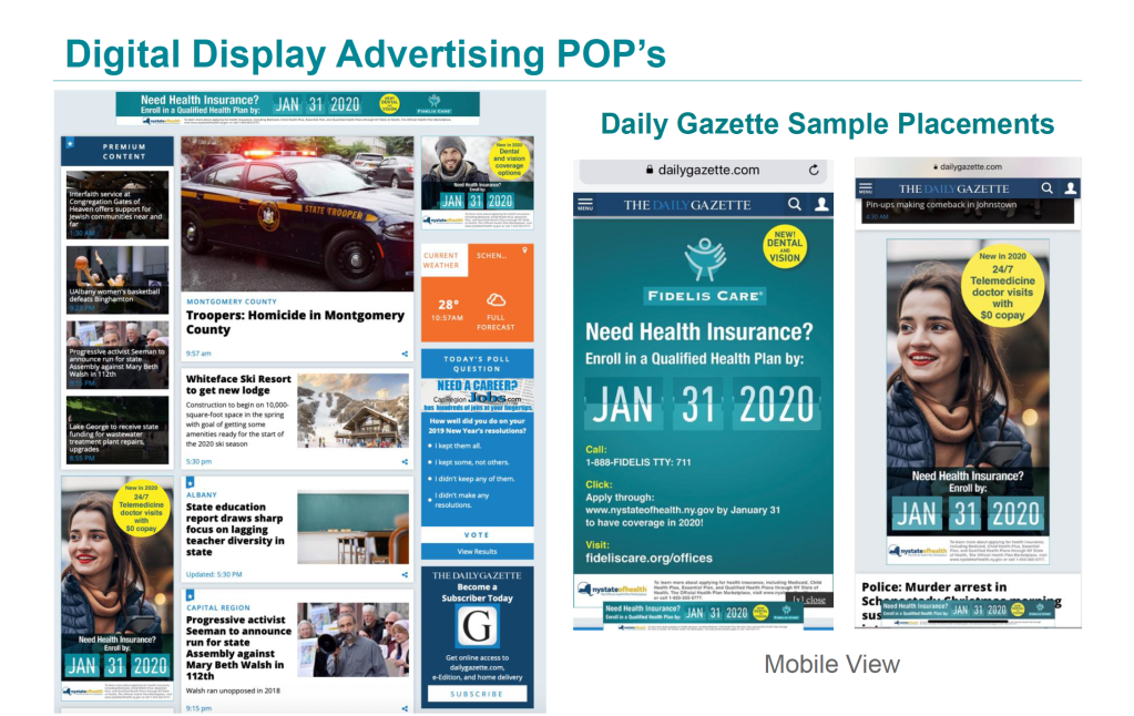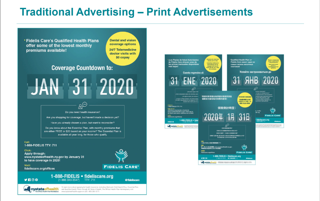 The “Coverage Countdown” campaign was designed to promote Fidelis Care Marketplace health insurance plans, highlight competitive benefits and create a sense of urgency for people without coverage to enroll during the January 1st – 31st open enrollment period. Overseeing all aspects of marketing and communications for this campaign was one of my greatest achievements during my career at Fidelis Care.