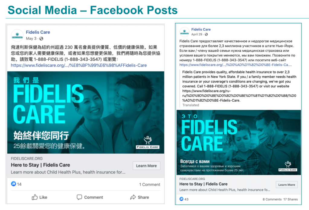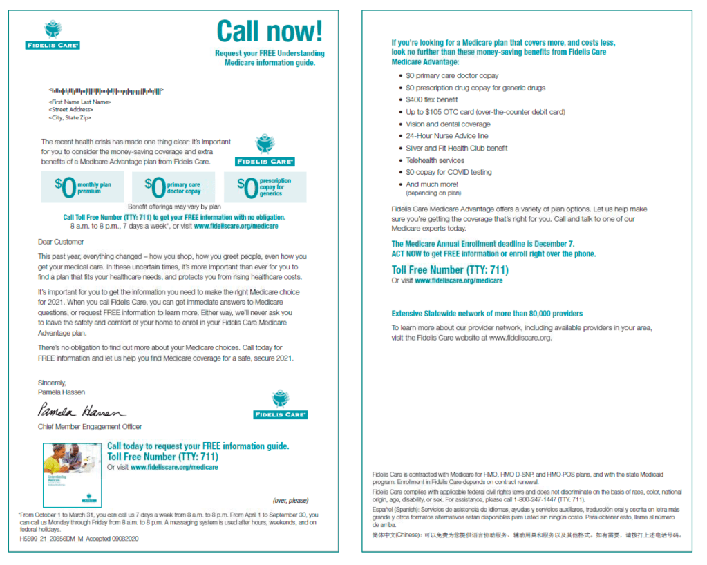 • Direct mailers sent to 30,000+ members surrounding the Fidelis Care community offices